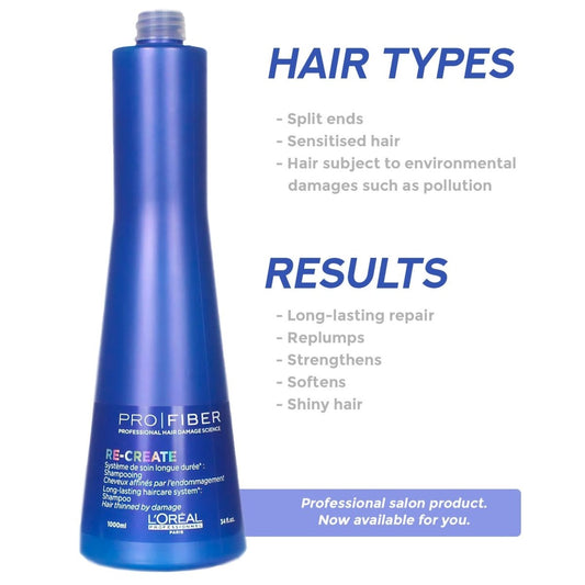 L'Oreal Pro Fiber Recreate Shampoo 1000ml (34 fl oz) - Pack of 3